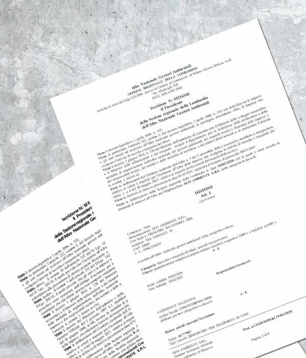 Siamo in possesso anche la categoria 8 per l'intermediazione di rifiuti.